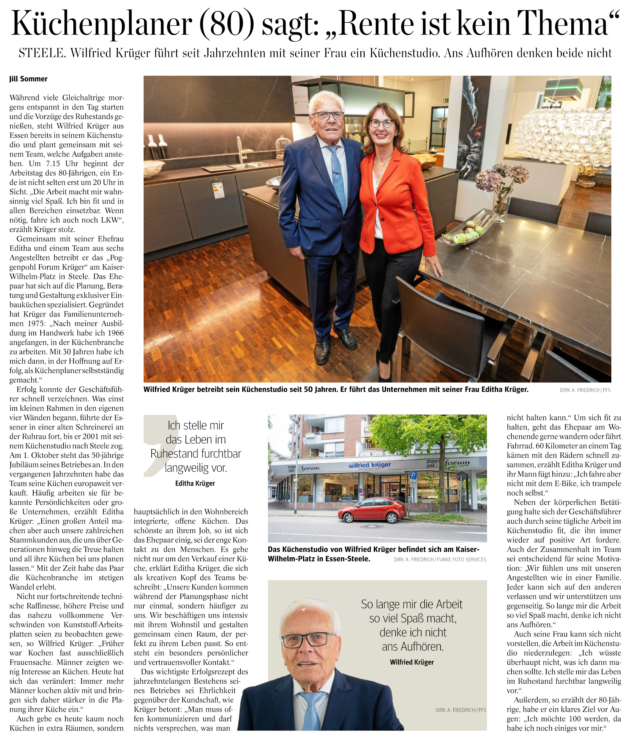 Während viele Gleichaltrige morgens entspannt in den Tag starten und die Vorzüge des Ruhestands genießen, steht Wilfried Krüger aus Essen bereits in seinem Küchenstudio und plant gemeinsam mit seinem Team, welche Aufgaben anstehen …